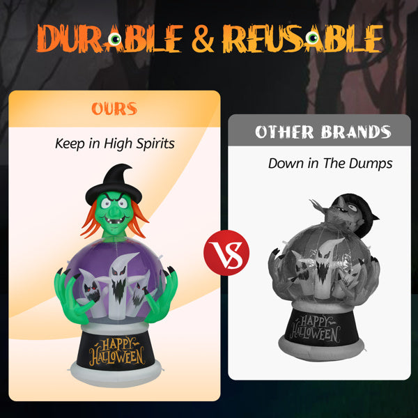 5.9ft Witch Crystal Ball With 3 LED Lights And 3 RGB Lights, Halloween